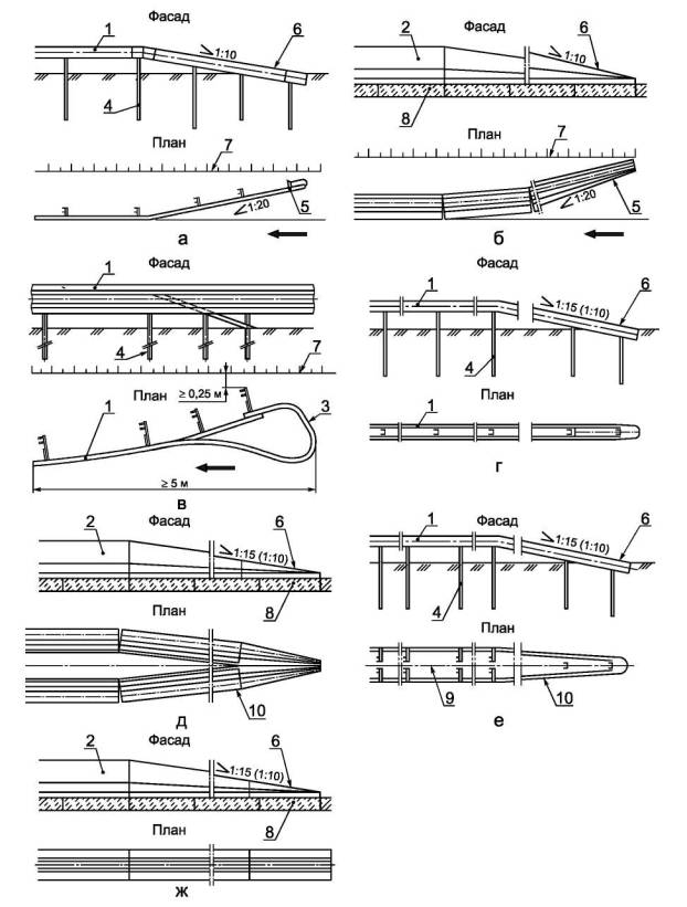 разделительной полосы и перед торцевыми частями подпорных стенок транспортного